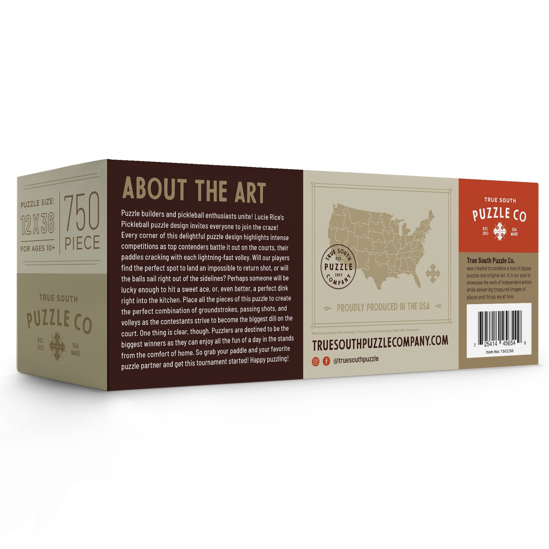Our puzzles are created in a collaborative effort between artists and True South to highlight unique facts carefully researched about each location. Fun facts are listed on the back and inner sides of boxes.